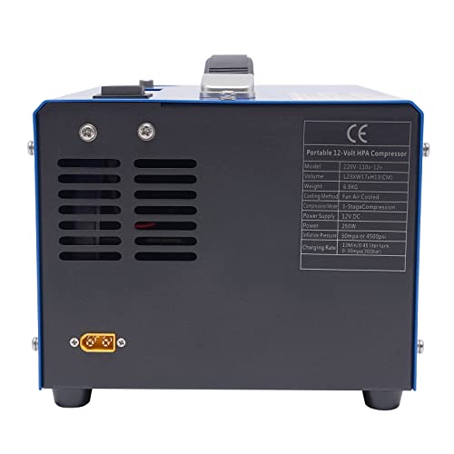 Snel opblazen: gebruik van een zuivere koperen motor, samen met 250 W nominaal vermogen en 4500 psi maximale druk, heeft deze luchtcompressor slechts 13 minuten nodig voor de druk van een 0,45 l dompelfles om van 0 MPa naar 30 MPa te stijgen.